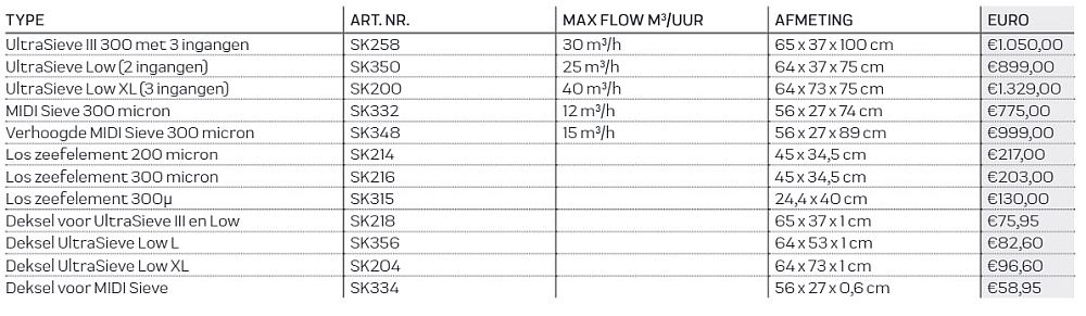 | Vali toode: | Ultrasieve Low, Ultrasieve Low "XL", Filtrielement 200 mic, Filtrielement 300 mic, Filtrielement XL 300 mic, Filtrikaan Ultrasieve + Ultrasieve Low, Filtrikaan Low "XL" |