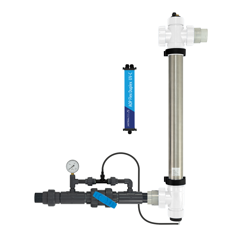 Sellesse arukalt kavandatud desinfitseerimissüsteemi integreeritud osooni ja UV-C kombinatsioon tagab alati puhta, värske ja tervisliku basseinivee, mille puhul on võimalik kasutada äärmiselt minimaalselt lisatavat kloori. Kaasasoleva venturi kaudu imetakse õhk väljastpoolt UV-C-lambi ja kvartshülsi vahelisse ruumi. Spetsiaalne UV-C-lamp tekitab nii 254 nm kui ka 185 nm kiirgust. 185 nm kiirgus muudab vees olemasoleva hapniku osooniks. Toodetud osoon (maksimaalselt 0,6 g/h) segatakse difuuseri abil veega, et täita oma desinfitseerimis- ja oksüdeerimisülesannet. UV-C-korpuse sees muundab 254 nm UV-C-kiirguse abil kõik osoonijäägid OH-radikaalideks (nn täiustatud oksüdatsiooniprotsess), millel on osoonist veelgi tugevam oksüdeeriv jõud. See seade tagab kolmekordse desinfitseerimise: osoon, OH-radikaalid ja UV-C! Duplex UV-C seadme korpus on valmistatud roostevabast Duplex terasest. See muudab need seadmed sobivateks klooriga basseinis ja ka soolase vee elektrolüüsi basseinides.